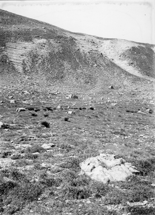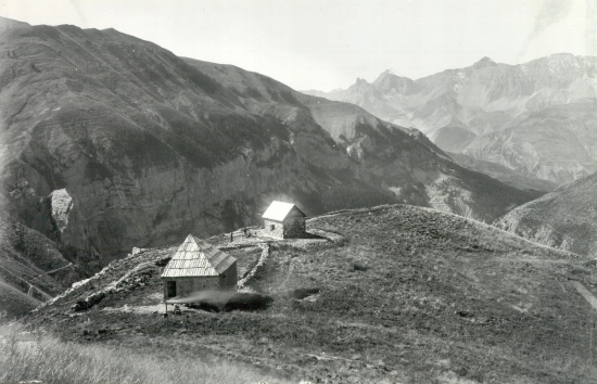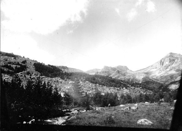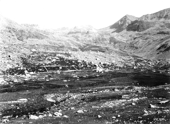 [ 215-25] Septembre 1899 Vallon de Sanguinières – Au fond Barne (2615m) Col de Sanguinières et tête du Colombier © Fonds R.T.M. 06.