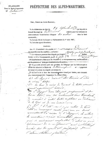 1929 Arrêté relatif à l'extraction des menus produits du sol forestier (Voir Alpes Azur Patrimoine [06O56-AN-01035]