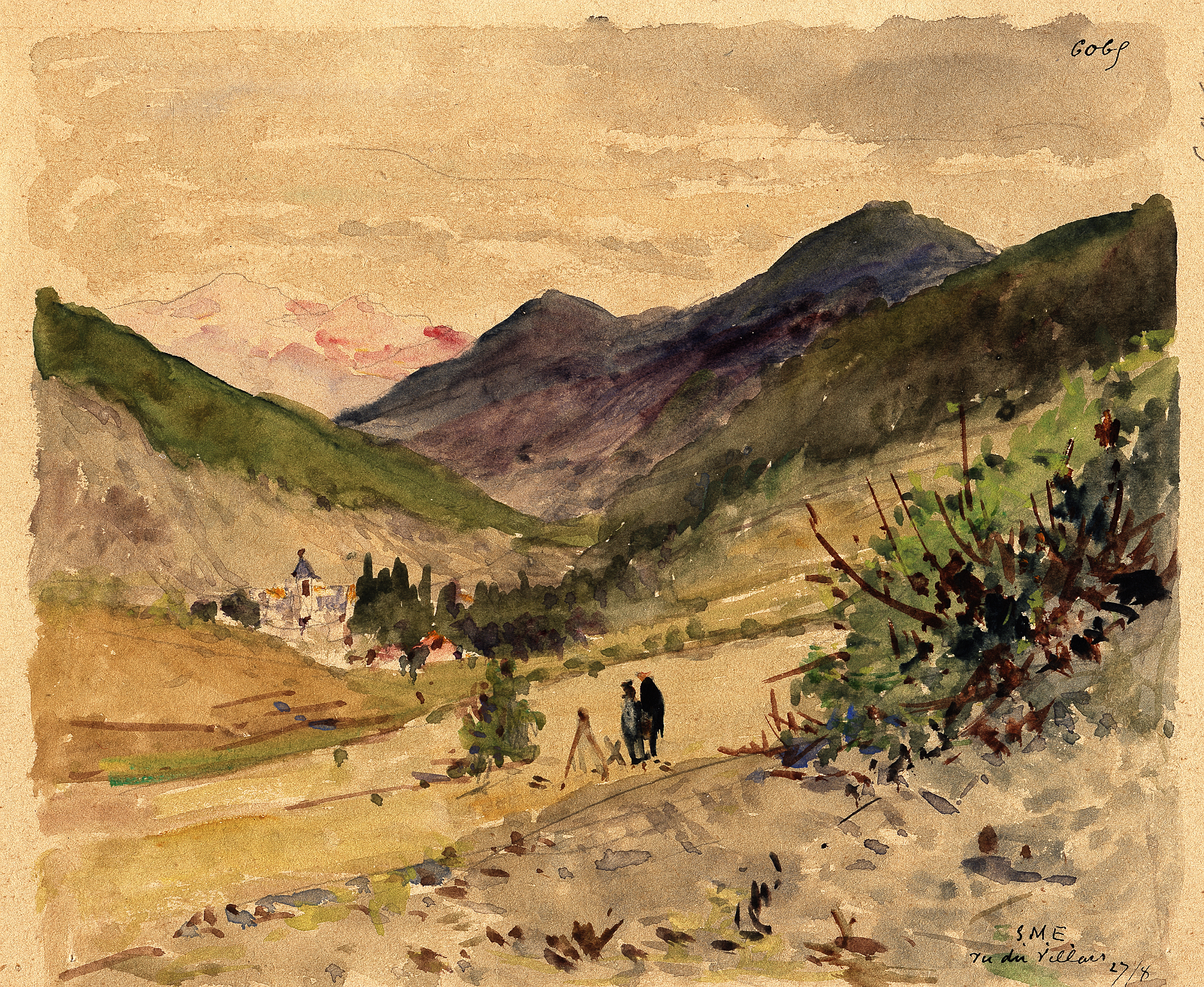 Alexis Mossa, (1844-1926) paysagiste et aquarelliste niçois, père de Gustave-Adolphe (1883-1971) peintre symboliste avec lequel il va parcourir très tôt le pays niçois pour en aquareller les sites pittoresques.