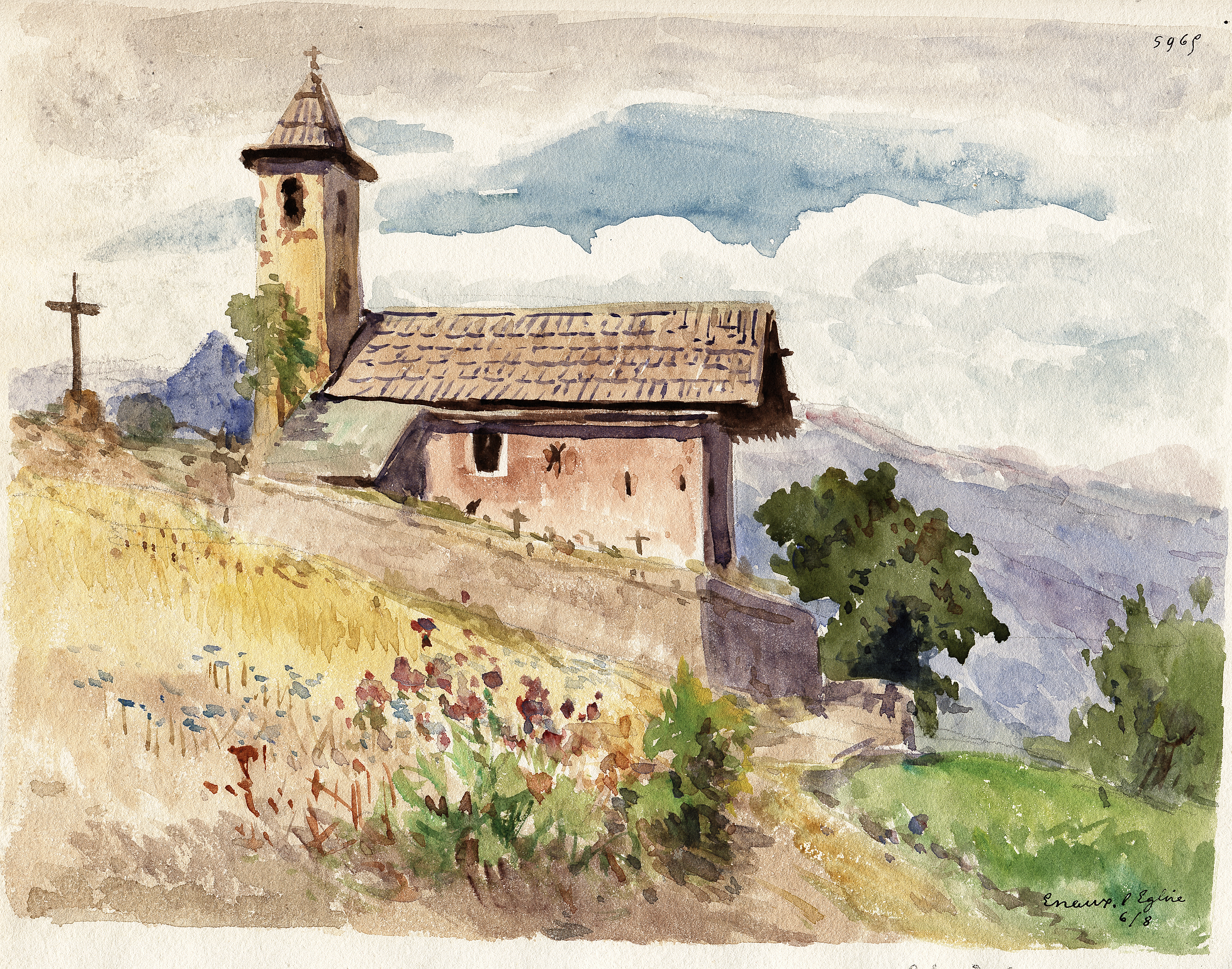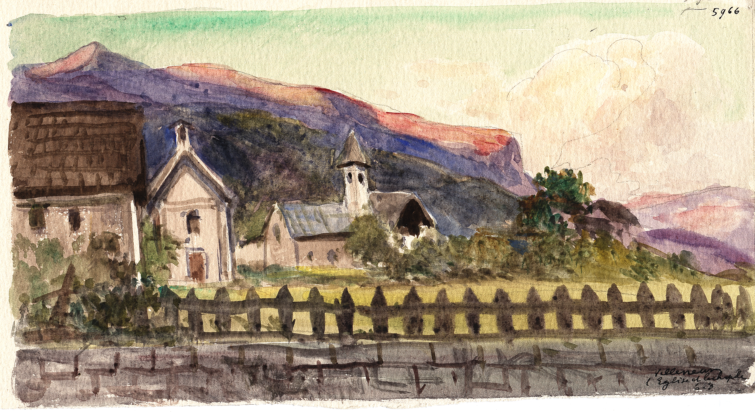 A. Mossa - Musée Masséna-Nice. n° 5970 - Inscription au crayon : " l’église de Villeneuve, le matin"