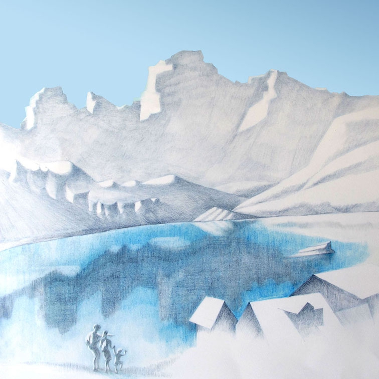 Lac d'Allos (2200m), crayon en camaïeu, 1991