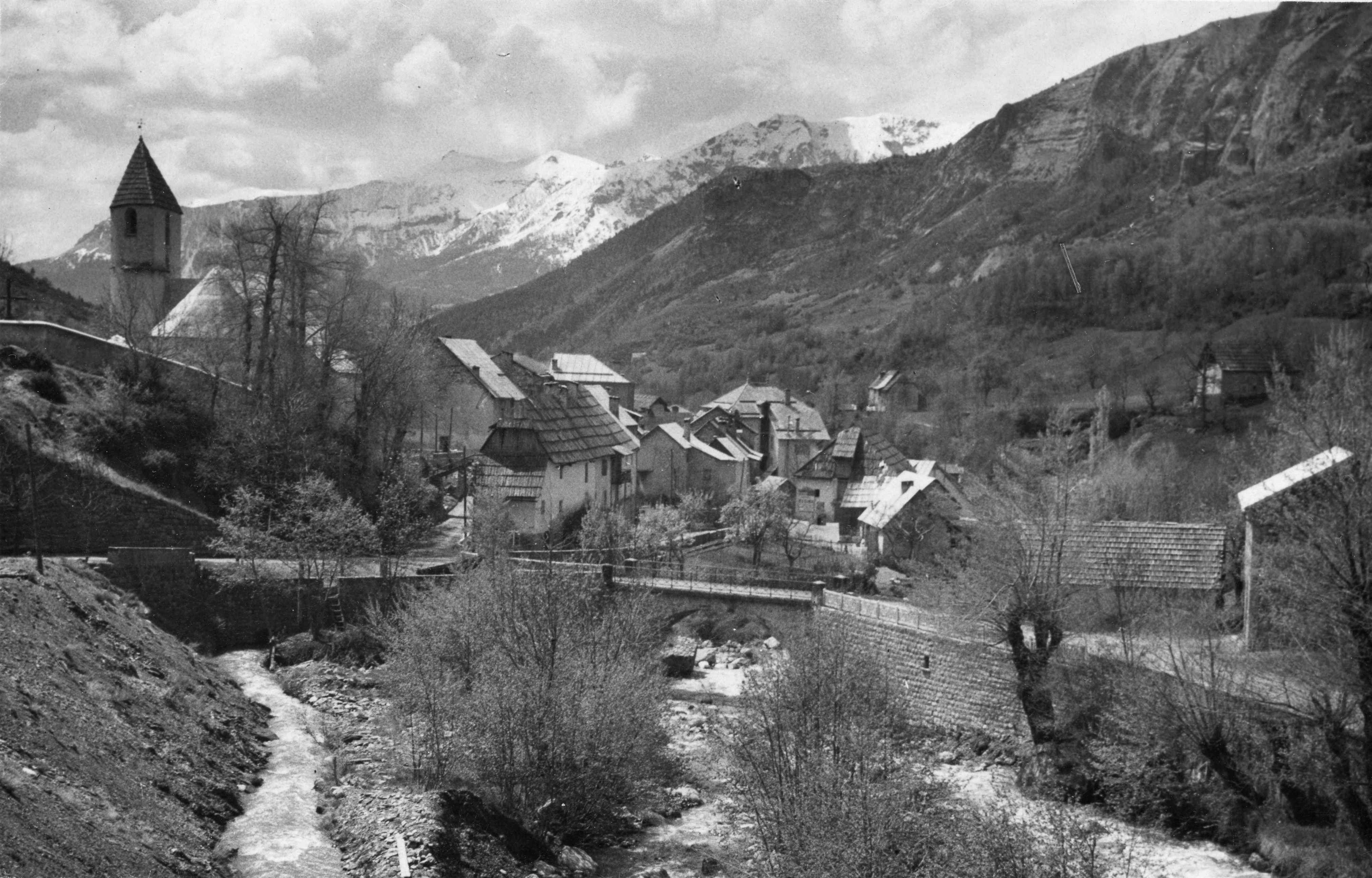Megevand Marc-Pierre Marc-Pierre MEGEVAND Peinture de Marc Pierre MEGEVAND (1879- ?--) ENTRAUNES, l’église, Le bout de ville, la chapelle Saint-Sebastien en 1931 - aquarelle de Megevand 41x57cm