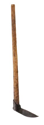 À gauche : Hache d’abattage, XIXe siècle. Provenance Rimplas. Coll. Particulière. Au milieu : Doloire de charpentier, XIXe siècle. Coll. Ange Maurin À droite : Fer de hache, fer forgé, XIXe siècle. Remarquer le rivet de renfort entre l’œil et la panne. Coll. Roudoule
