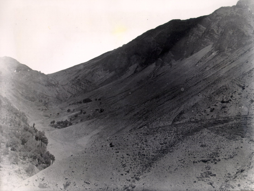 Grandes berges ravinées dans les marnes oxfordiennes sur la rive gauche du torrent de Puget-Rostang en face du village, fin XIXe siècle. Fonds RTM.