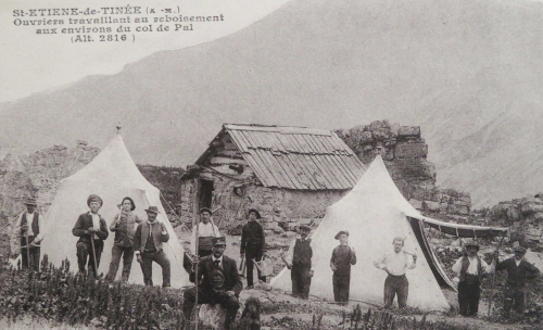 Saint-Etienne-de-Tinée, ouvriers travaillant au reboisement aux environs du col de Pal, début XXe siècle. Fonds Muraire