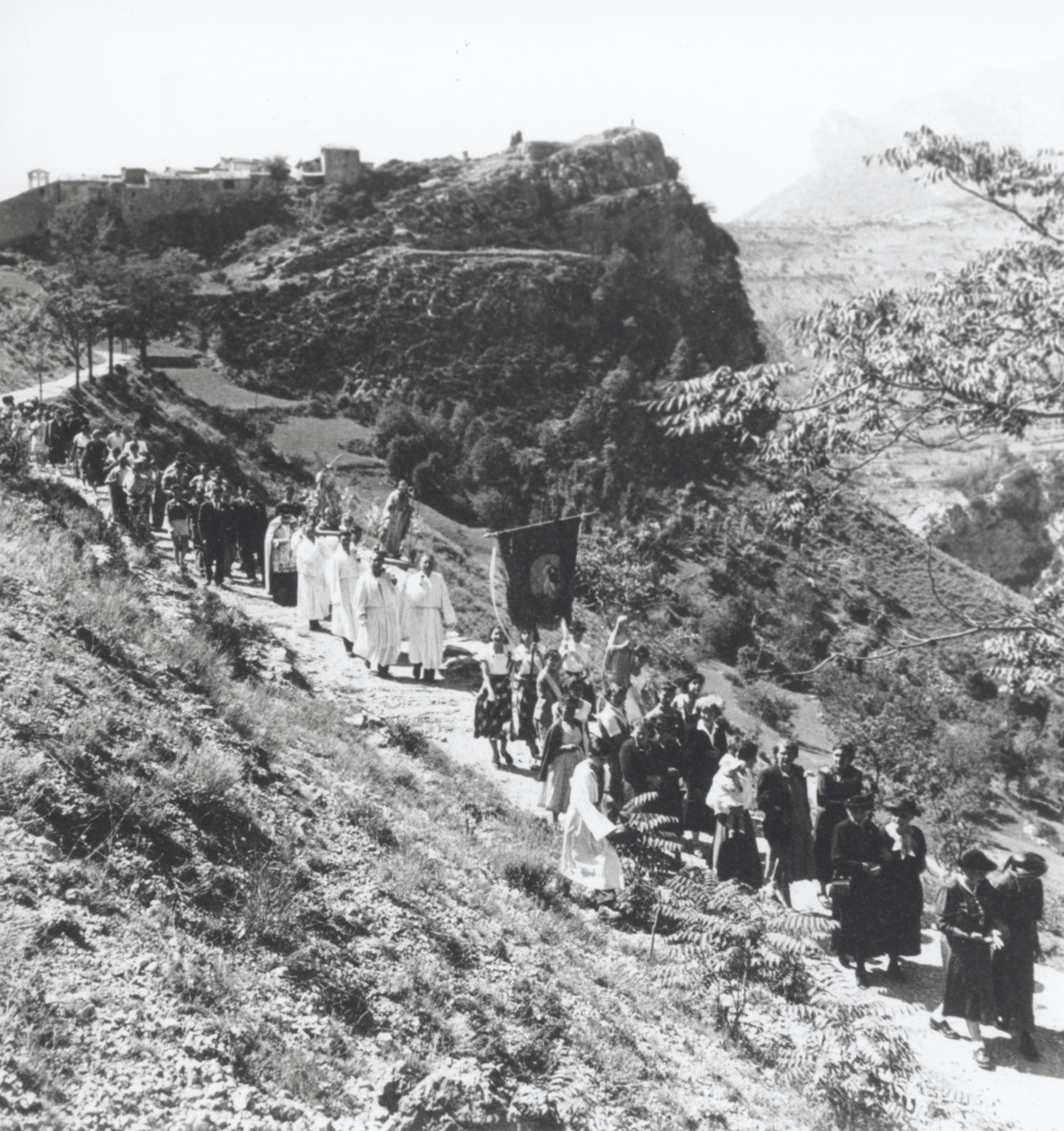 Processions d'hier. A partir de gauche, La Croix-sur-Roudoule, première moitiè du XXème siècle ; Saint-Barnabé, 1930 ; Saint-Julien, 1940 ; Saint-Jacques à Saint-Léger, première moitiè du XXème siècle ; La Croix-sur-Roudoule, 1960 ; Saint-Anne à Puget-Rostang, 1942 ; La Croix-sur-Roudoule, 1956