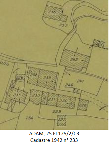 Il s’agit d’une autre habitation du hameau qui apparaît sous cette appellation dans l’actif de l’inventaire de 1897. Sur le cadastre de 1868 elle est cotée sous le n° 591, mesure 130 m2, et n’appartient pas aux Ollivier mais, ainsi que le bâtiment rural proche et deux petites parcelles (nos 592, 593, 594), à Arnaud Joseph – Lions Charles.