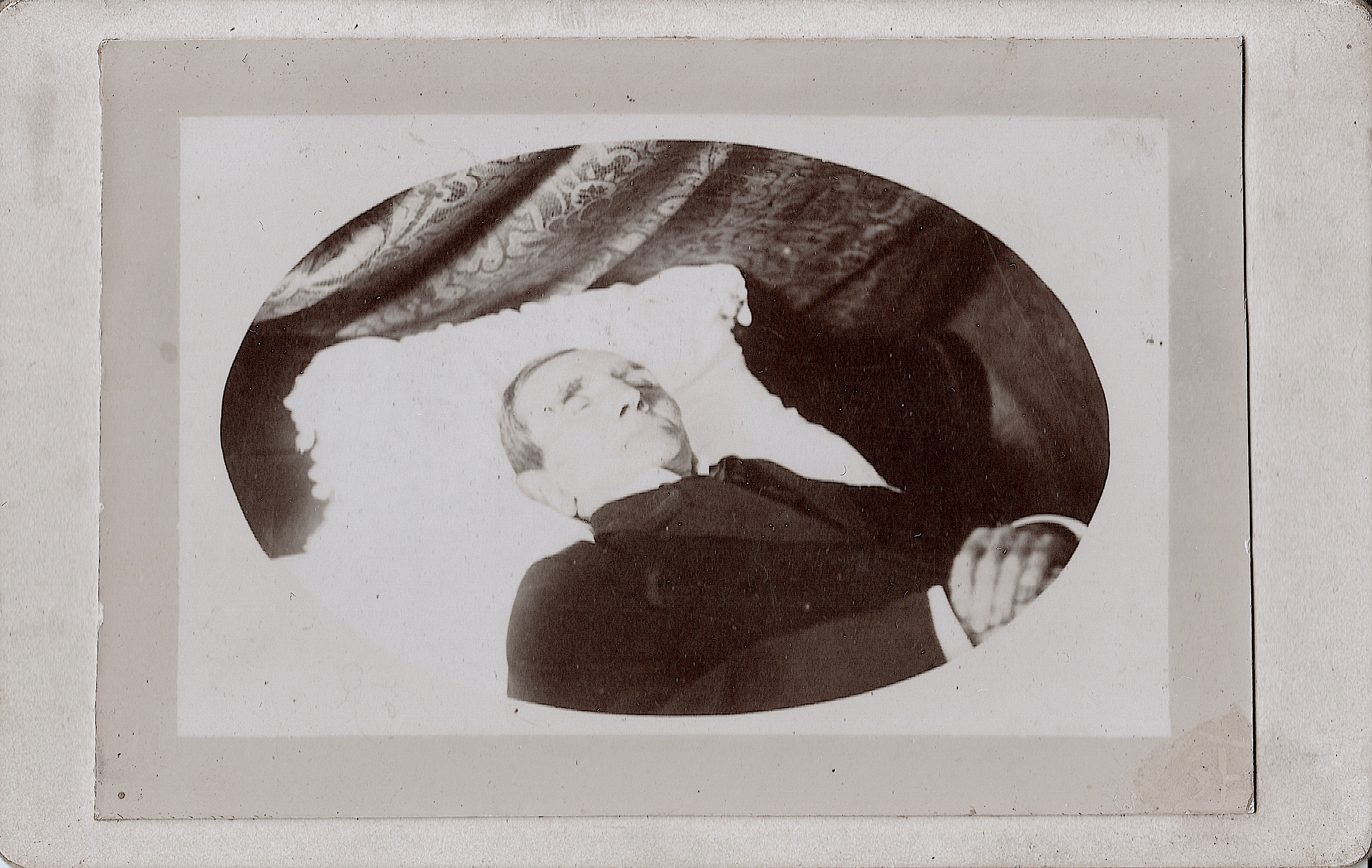 Quinze mois plus tard, le 29 novembre 1898 à 7 heures du matin, le notaire Désiré Pellat de Guillaumes se présente à la « maison de maître » des Clots et, introduit dans la chambre à coucher de Césaire alité, il reçoit ses dernières volontés, en présence de quatre ouvriers de la fabrique pour témoins -Pierre et Irénée Payany, Joseph Charentin et Gratien Burlot. L’ex- drapier agonisant dispose en faveur d’Aimé du quart « par préciput et hors-part » de tous ses biens lui demandant de s’occuper de sa soeur Thérèse –qui souffrait d’un grave handicap d’élocution- ou de lui fournir une pension de 250 francs, sa vie durant (129). Le testateur, incapable de signer l’acte, disparaît, à 72 ans, le 4 décembre suivant. Selon les canons d’une autre époque, il a même été « immortalisé » dans son dernier sommeil.