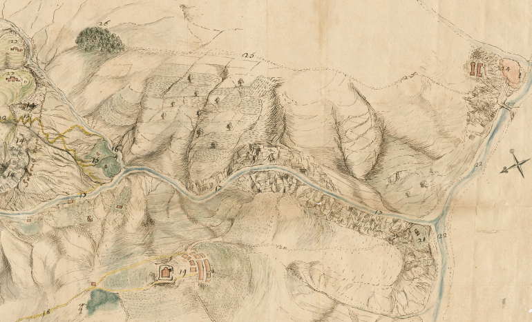 Bois de Sylva Longua (n°26) représenté dans les limites des communautés de Châteauneuf-d’Entraunes et de Guillaumes vers 1715, Ad06 Ni citta e contrado, mazzo 34.