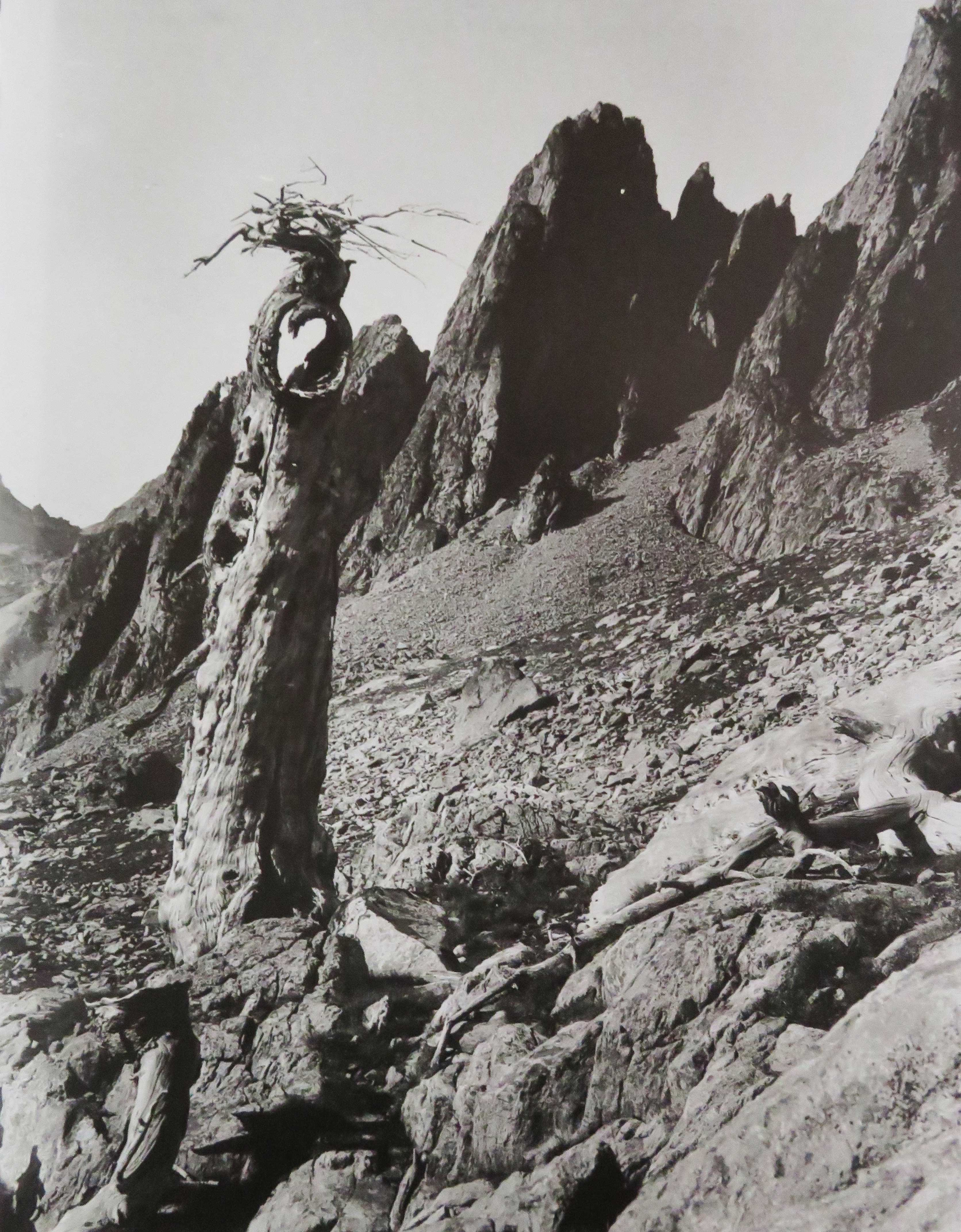 Squelette d'arbre sous le Ponset (2828m), au fond le Caïre de la Madone (2532m), Madone de Fenestre, Vésubie, 2 septembre 1911, Victor de Cessole. Bibliothèque de Cessole, ville de Nice.