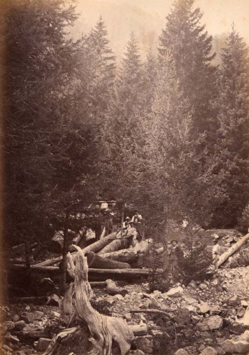 Exploitation forestière dans la vallée de la Vésubie, vers 1890. Fonds Andreani, collection Bibliothèque de Cessole, Ville de Nice