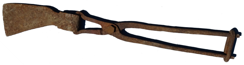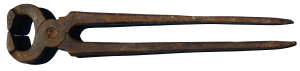 Tenaille dite tricoise utilisée pour saisir un fer de hache