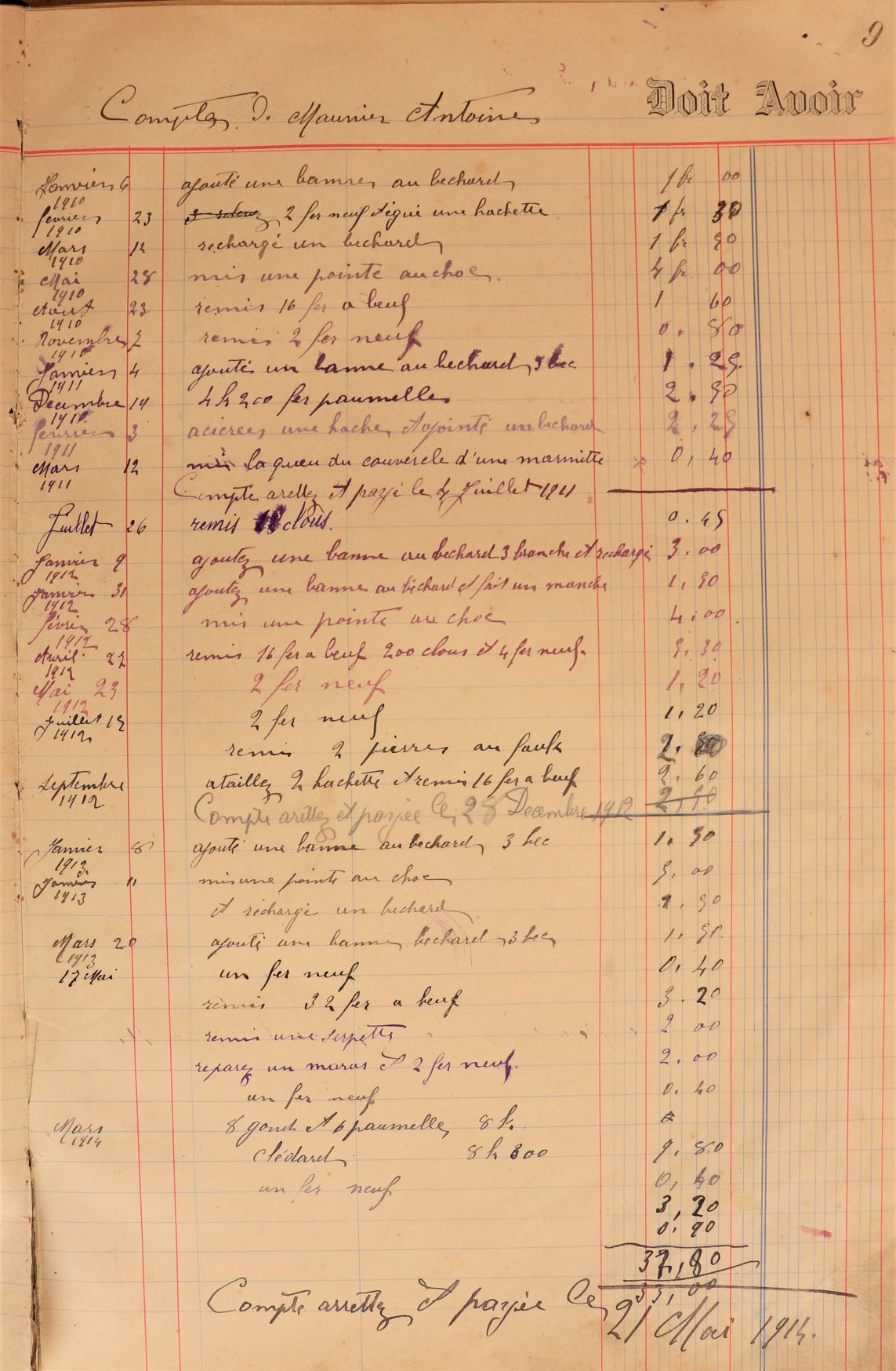 Extrait du livre du compte de Marius Isnard tenu entre 1896 et 1916. Fonds Christine Thomas.