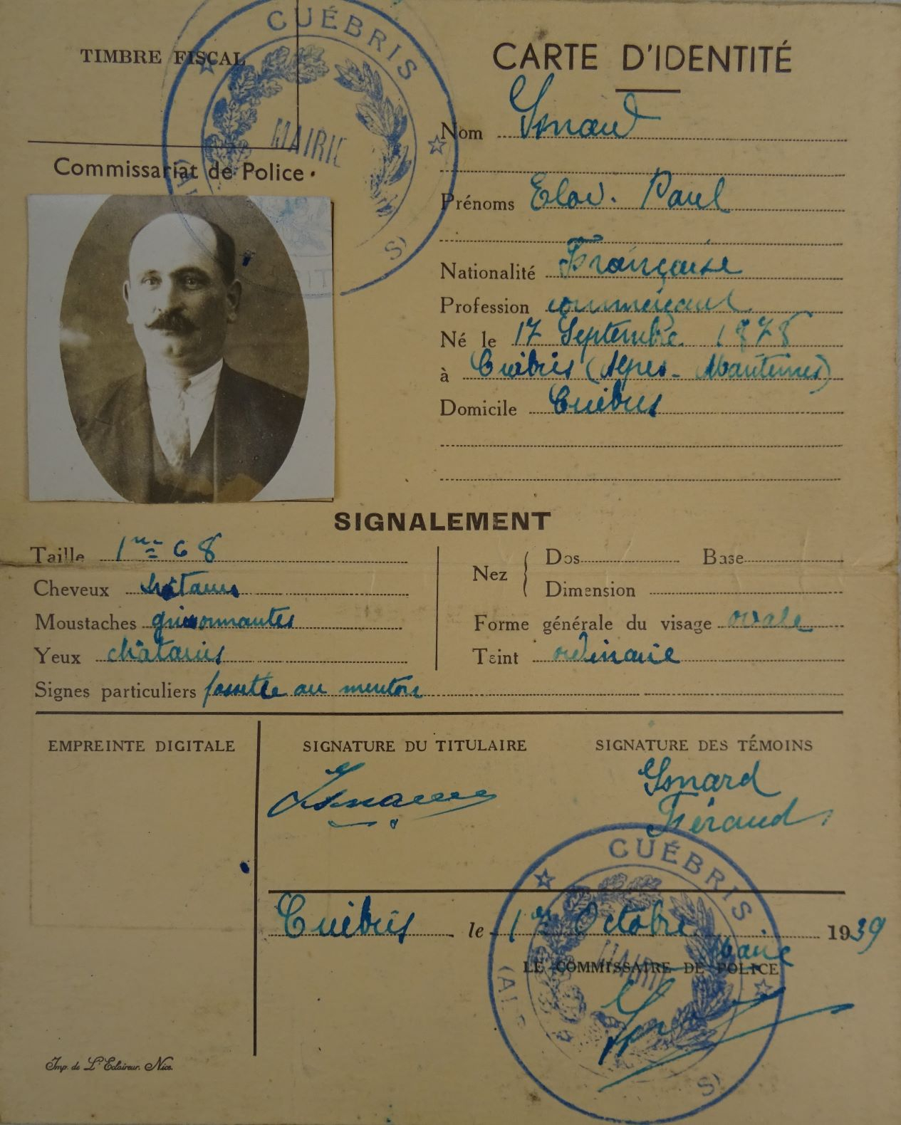 Carte d'identité d'Eloi Isnard, Fonds Christine Thomas.