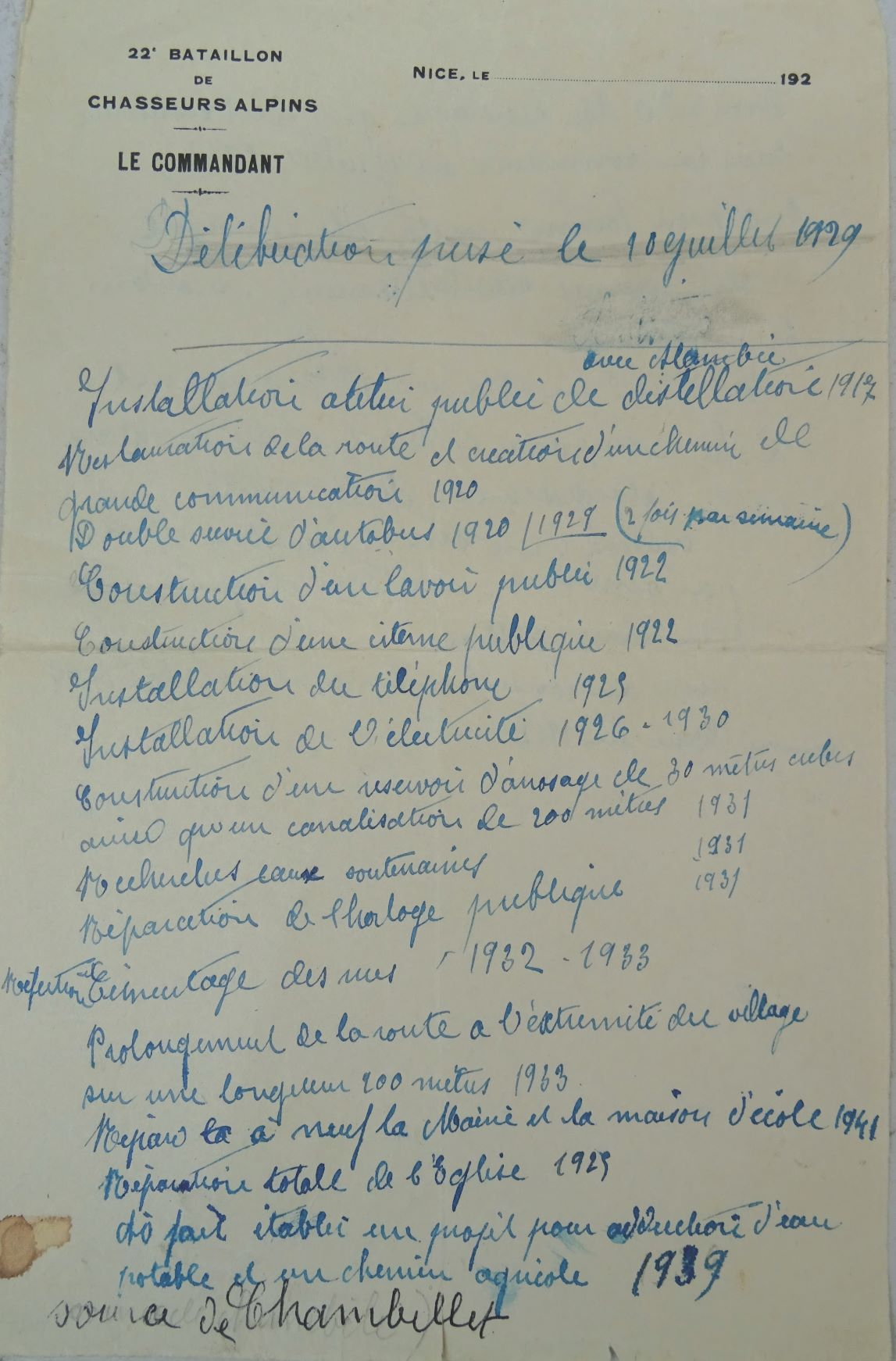 Notes sur les réalisations lors de ses mandats de Maire de 1912 à 1944. Fonds Christine Thomas.