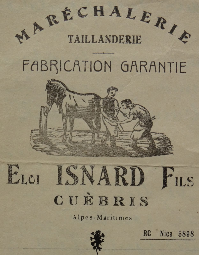Quelques courriers et deux étiquettes conservés sur des caisses dans la forge nous apprennent que Marius et Eloi Isnard commandaient de l'outillage destiné à la revente dans les foires environnantes. chez Michel à Sisteron, Conand à Grenoble, et à la Manufacture d’Armes et de Cycle de Saint-Etienne.