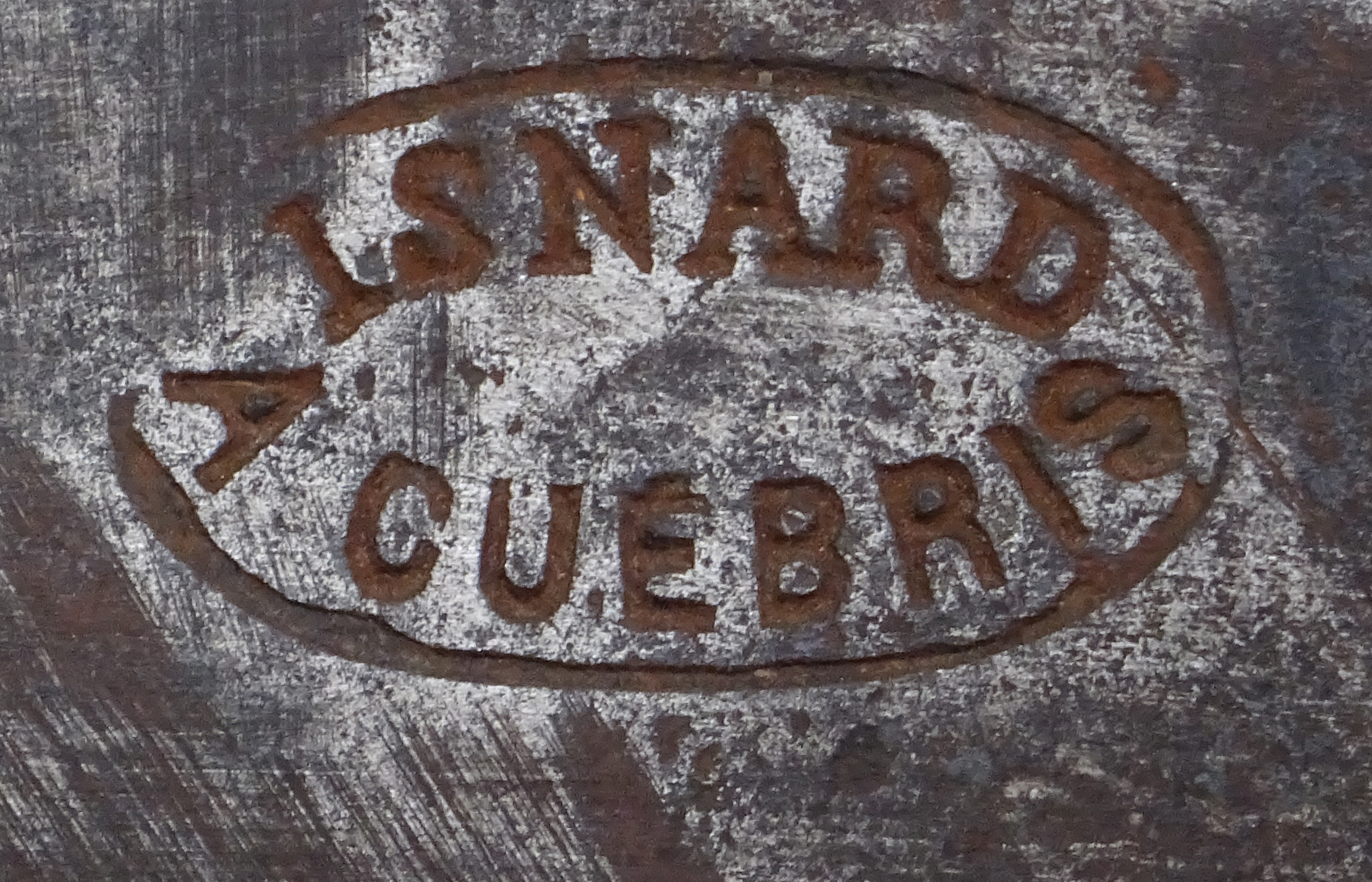 ISNARD CUEBRIS dans un ovale et ISNARD A CUEBRIS Premières marques de forge connues.