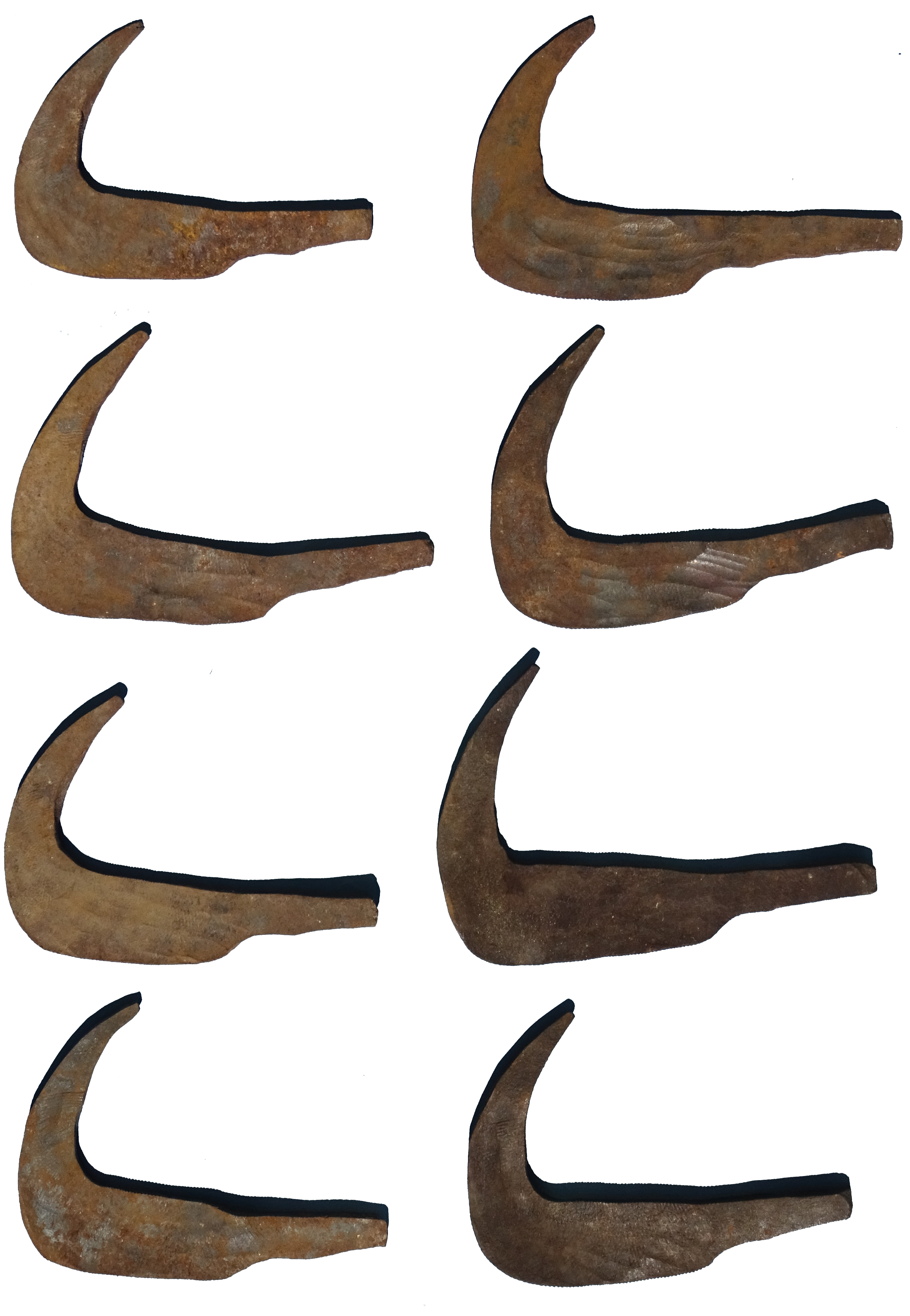 Elles se font de différentes formes et de différentes longueurs, suivant le volume et la forme des fers qu'on a saisir. La plupart du temps, c'est le forgeron qui les fabrique en fonctions de ses besoins.