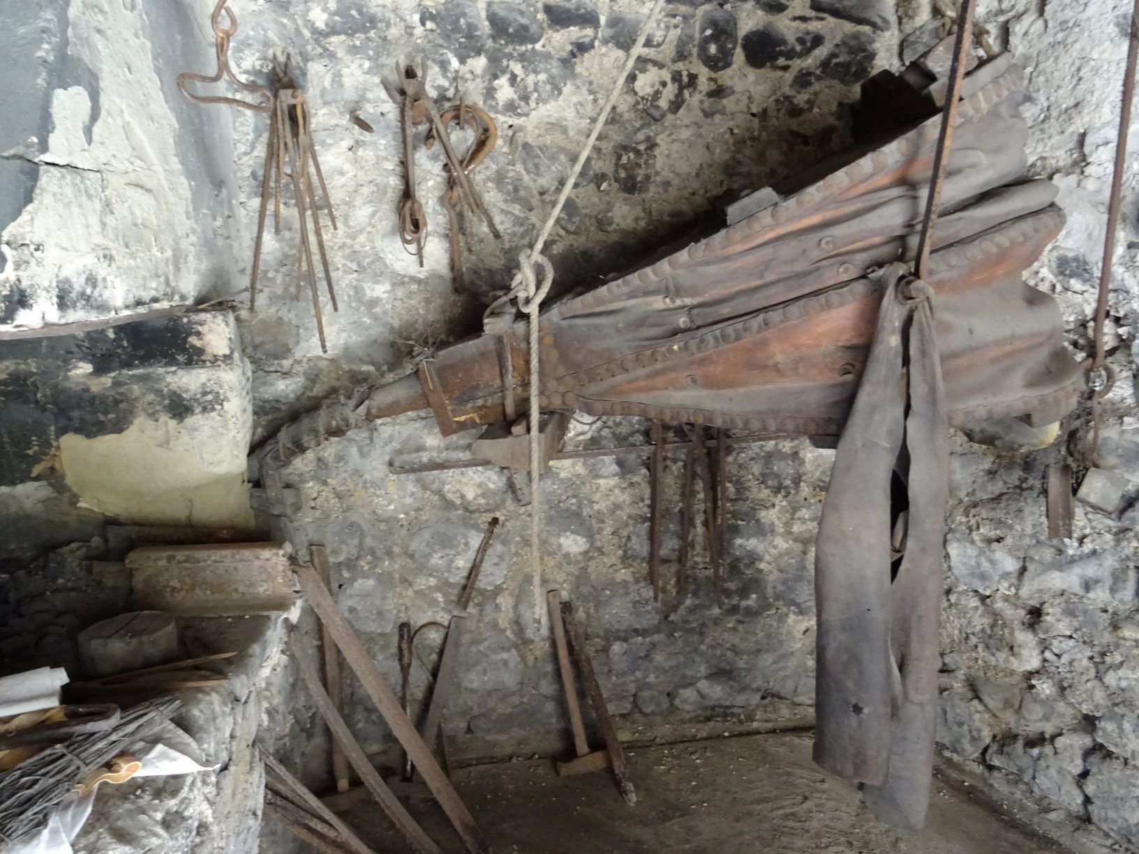 Des piles de fer de fabrication industrielle destinés au mulet révèlent activité intense de maréchalerie dans la forge. Des torts nez attestent que les hommes ont parfois affaire à des animaux récalcitrants. . Durant son service militaire, Eloi Isnard a assisté un vétérinaire, ce qui lui a permit de pratiquer des soins sur le cheptel du village. Quelques outils vétérinaires (curette, flamme, pointe à cautériser...) en témoignent.