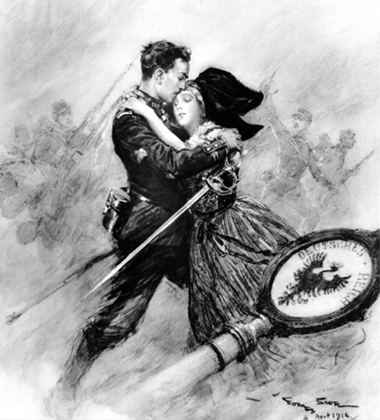 Officiers du 114e RI embrassant la Lorraine, Scott, 8 août 1914.