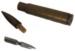 A gauche, Porte plume ; A droite, Boîte plumes Serjent Major