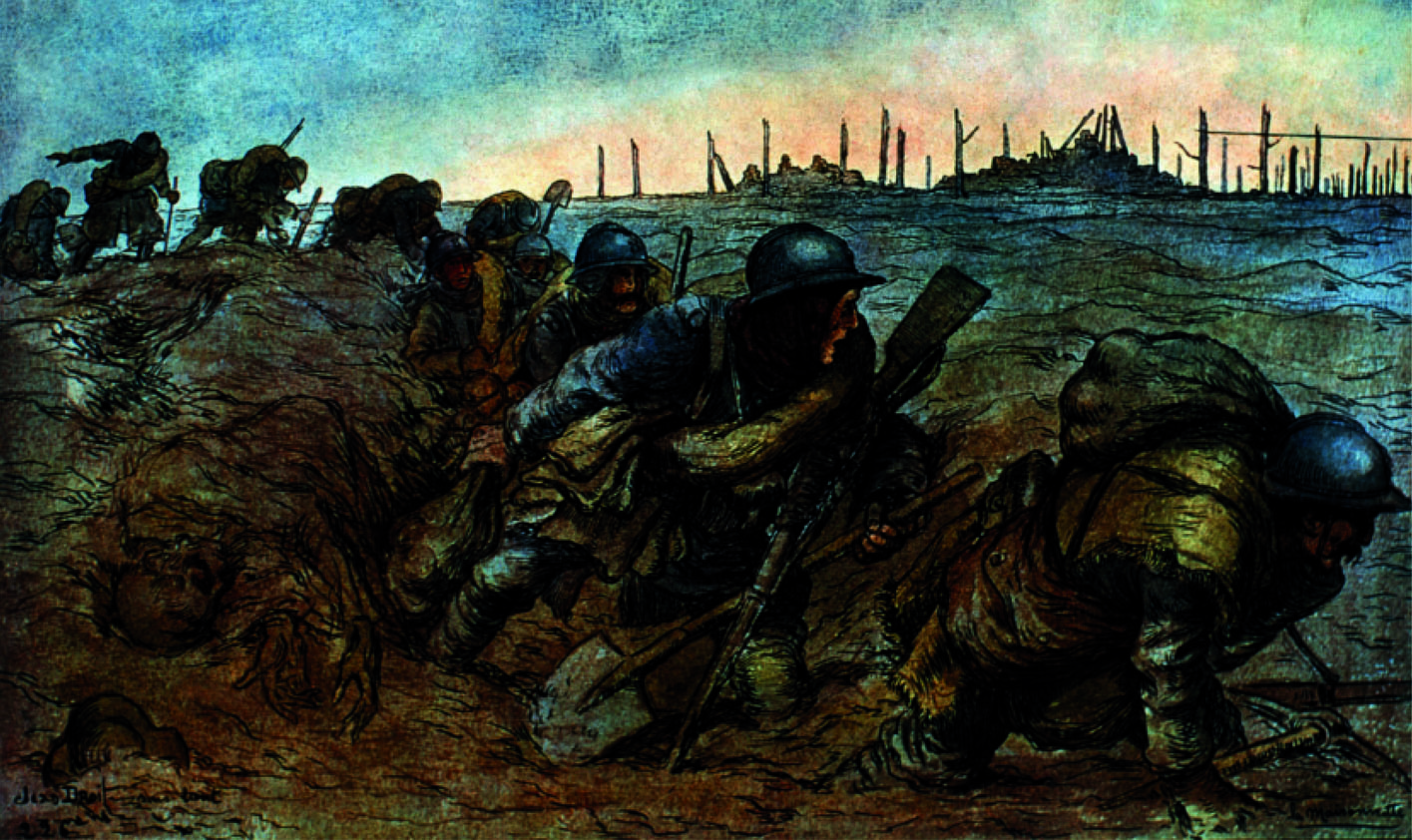 Poilus dans les tranchées en 1916, par Jean Droit.