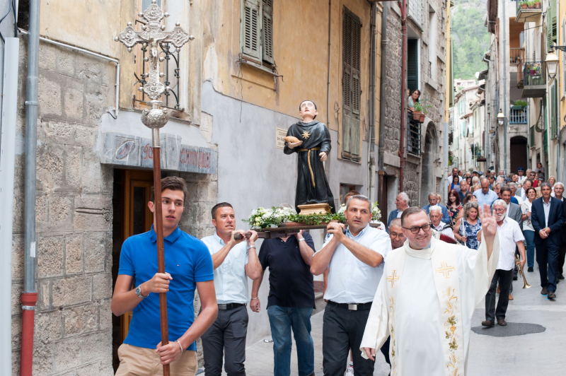 Saint-Nicolas-de-Tolentino, tenant dans sa main un petit pain. Porté en procession le 31 août 2019, lors de la fête patronale. Photo Franck Petit.